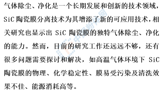 近年SiC陶瓷膜在氣體除塵、凈化方面的應(yīng)用研究也不斷涌現(xiàn),SiC陶瓷膜有望在氣體分離領(lǐng)域大有作為。